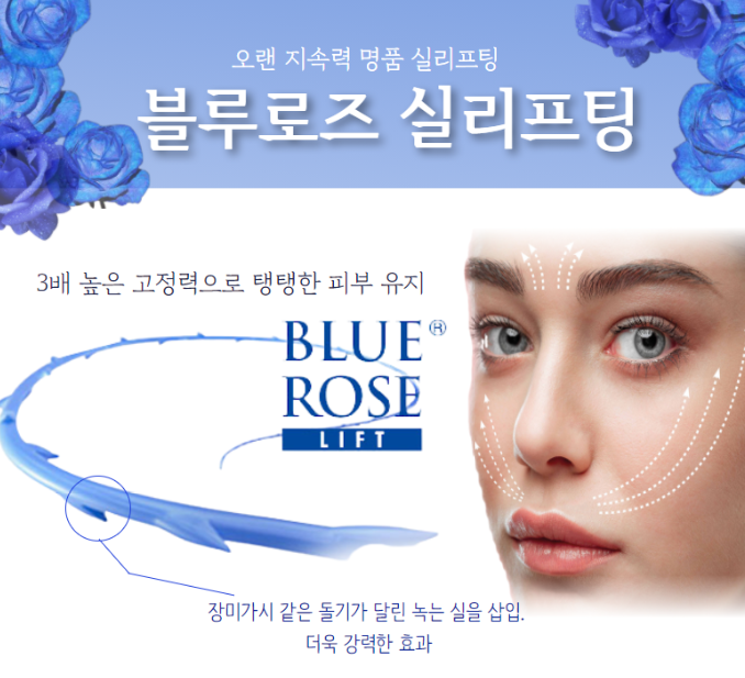 또한 안면거상술에서 장기간 유지가 가능한 방법이고 안정적이기 때문입니다. 그중에서 이야기하고 싶은 티라는 블루로즈다. 다른 쓰레드리프팅과는 조금 다르고 특징이 있습니다. 기능이므로 유용한 정보가 될 것 같습니다. 특별한 것은 라인 자체입니다. 기존의 실과 비교하면 파란장미라 실만들기 과정이 조금 다르다고 할 수 있습니다.