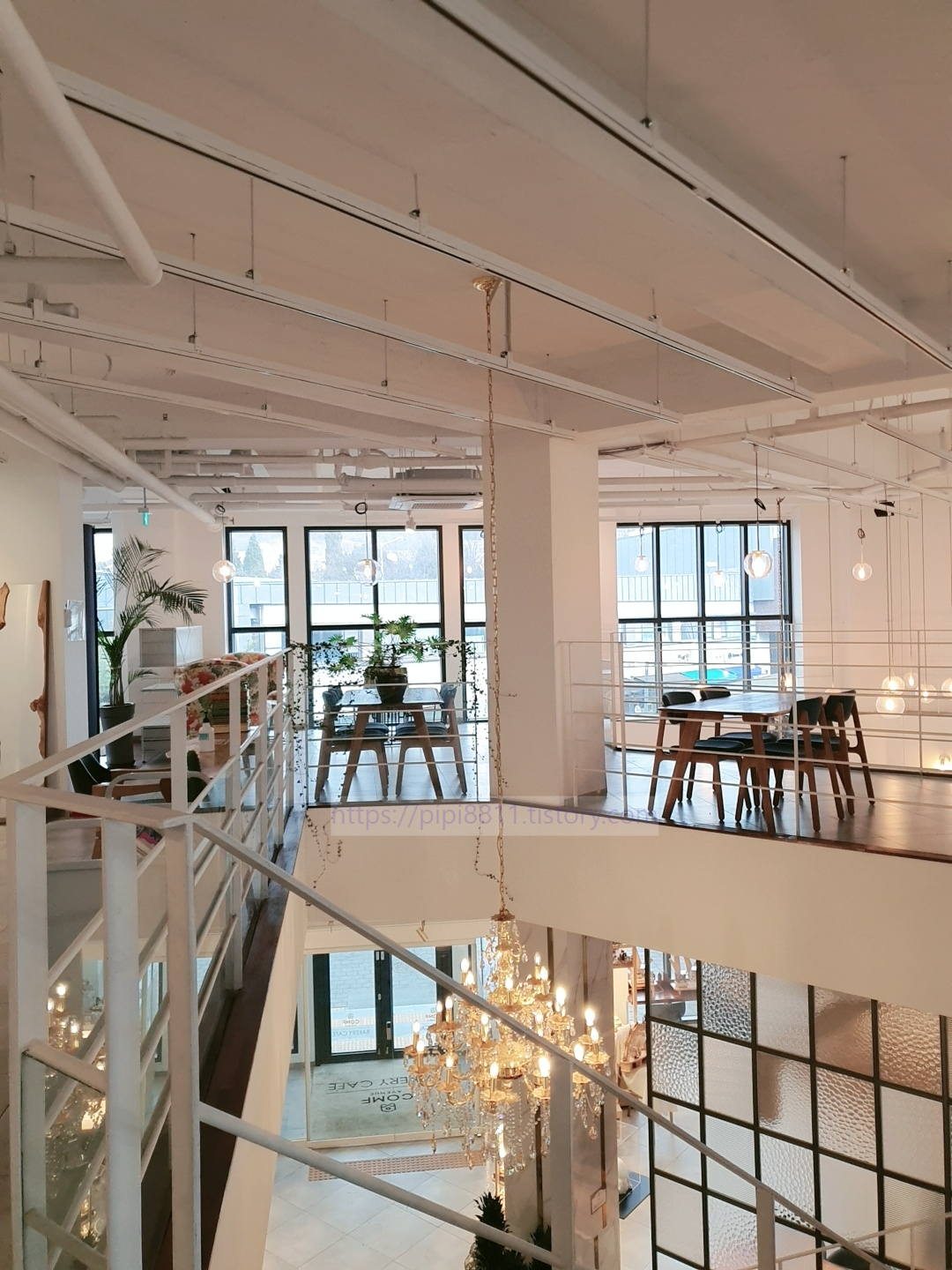 2층에도 자리가 많아요. 예쁜 샹들리에도 볼 수 있고, 2층은 좌우가 다른 컨셉으로 꾸며져 있다.