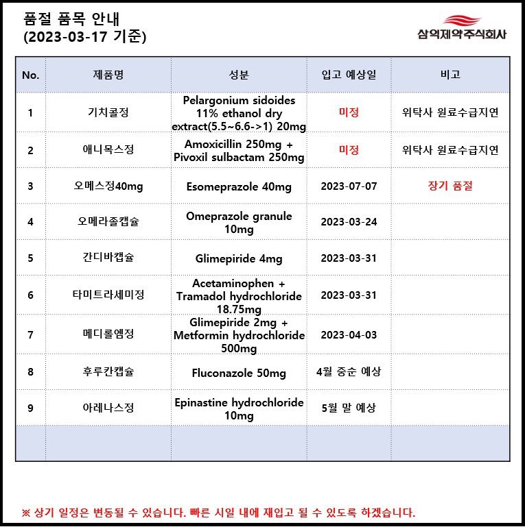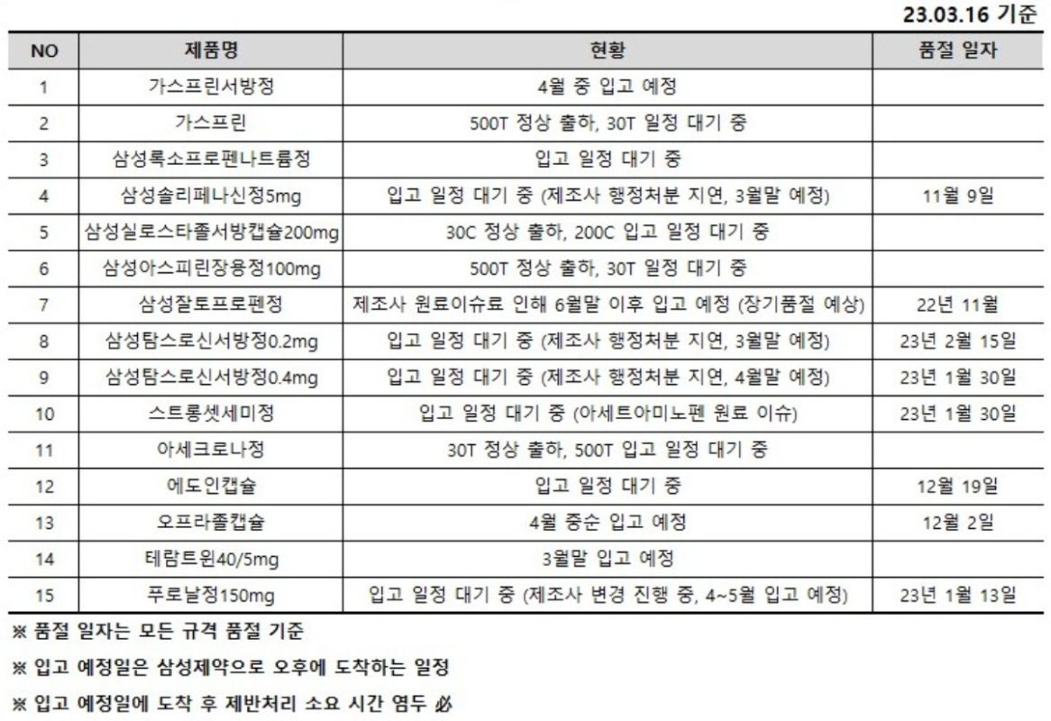(삼성제약) 품절현황 안내입니다.