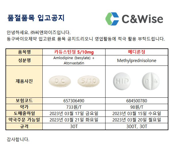 (동구바이오) 품절 예정일
